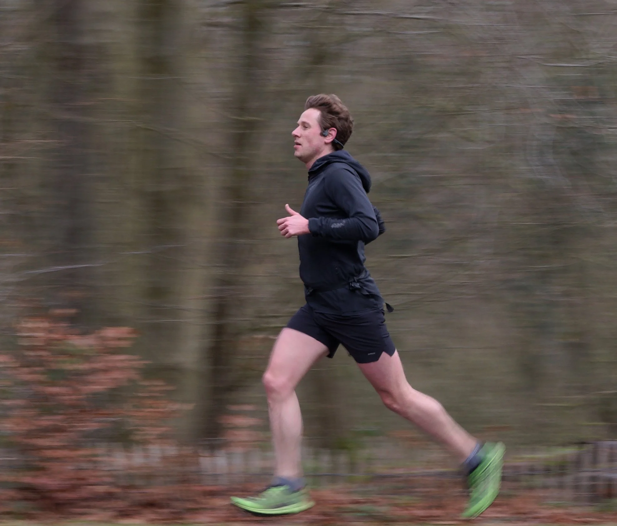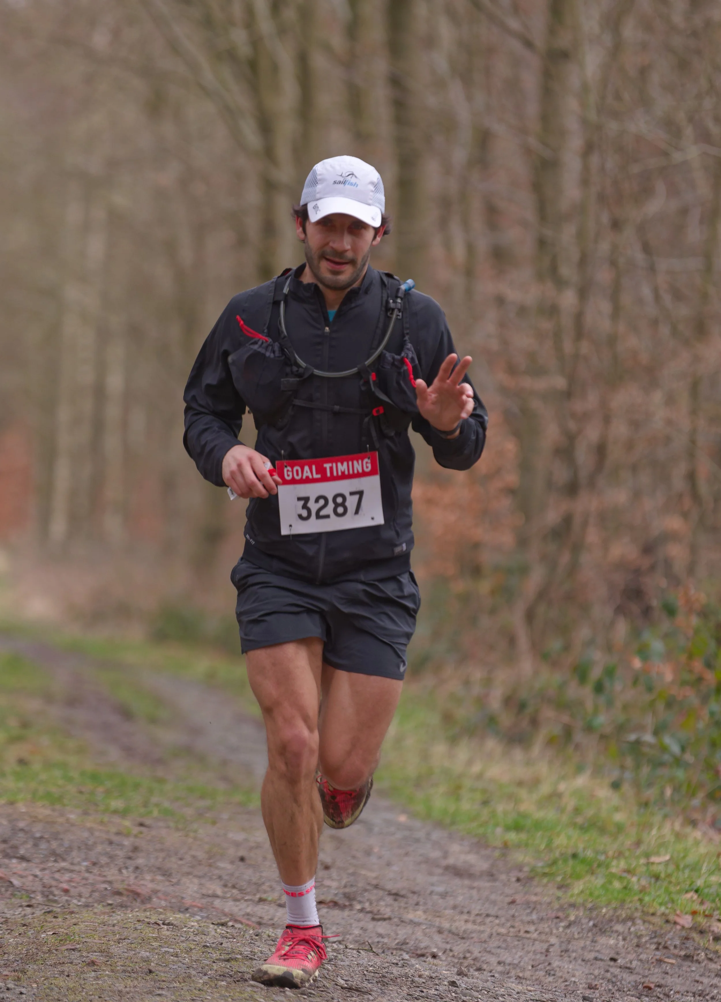 La foulée parait encore bien dynamique au sommet de la dernière côte du trail. Mais elle ne suffira pas à ce coureur pour monter sur le podium, il figure à la 4e place du classement final. Il foule un chemin à l’aspect particulier, bien différent de la teinte jaunâtre donnée par la dolomie à la plupart des sentiers de la forêt de Soignes. La tendance actuelle est à installer, comme ici, un cailloutis de porphyre, minéral gris qui a l’avantage de ne pas modifier l’acidité du sol et donc de ne pas changer les conditions de développement des espèces végétales.