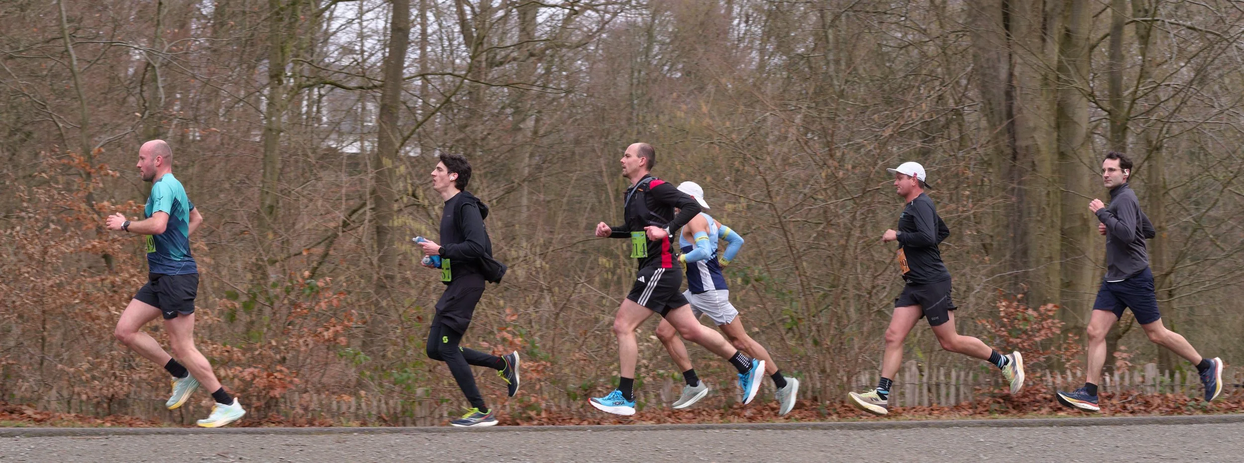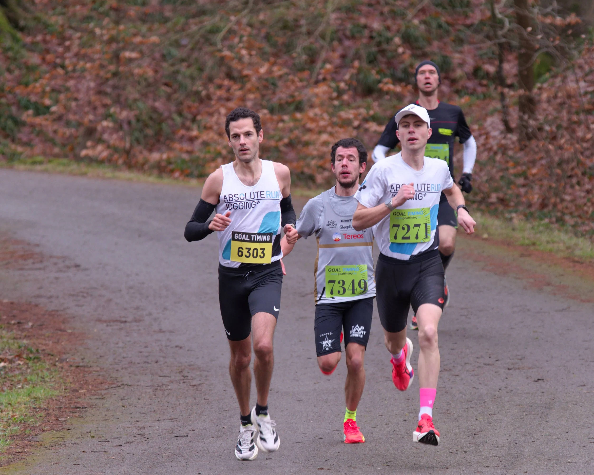 En bas de la première descente, au niveau du croisement avec le chemin du Vuylbeek, un quatuor s’est déjà détaché. Il est mené par les coureurs qui termineront aux deux premières places des dix km mais dans l’ordre inverse.